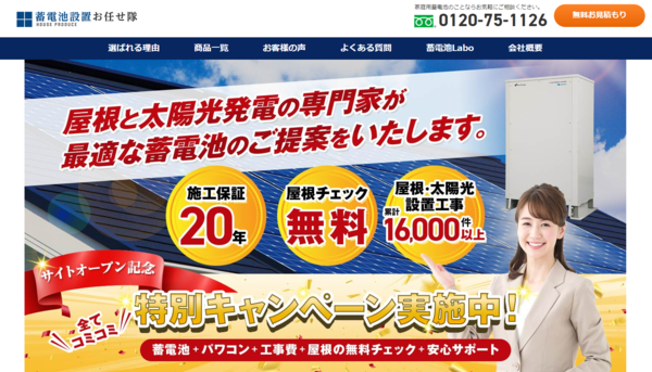 蓄電池設置お任せ隊は、提案からメンテナンスまでをオールインワンで依頼できる会社です。機器選びの段階から、導入されている太陽光発電システムのメーカー・設備と屋根の状態チェック・メンテナンスの判断までを行ってから施工を行うことができます。